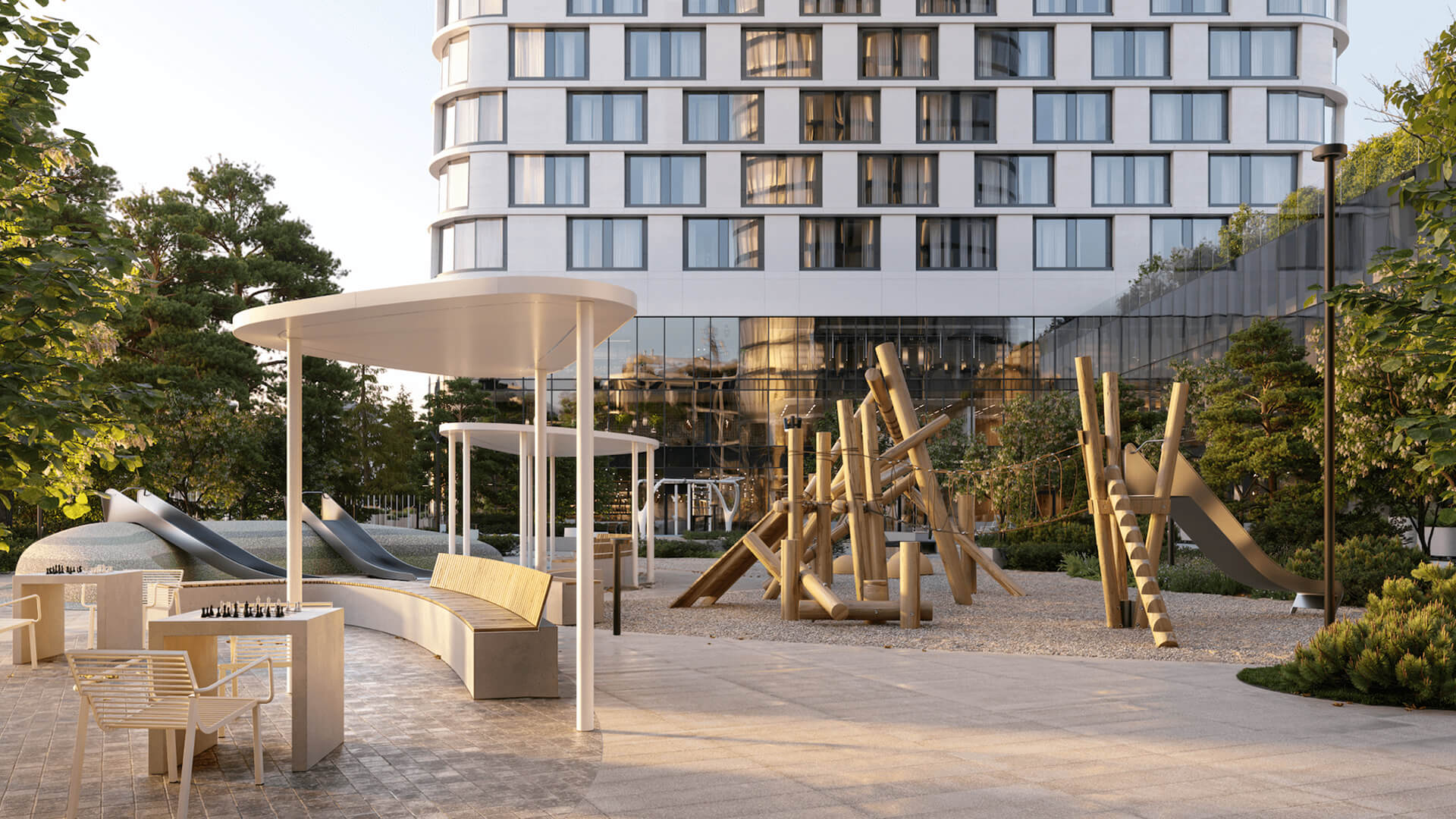 Дизайн территории выполнен в духе минимализма, с использованием светлых тонов и обилия открытого пространства, что способствует расслаблению и создает ощущение гармонии. Зеленые зоны, уютные уголки для отдыха и продуманная инфраструктура делают SOLOS идеальным местом для жизни, где можно наслаждаться природой, не покидая пределов города.